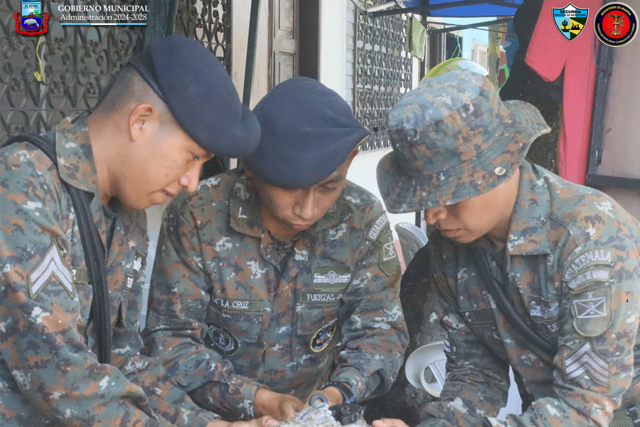 Dirección de Gestión Ambiental Municipal DIGAM, Elementos de la PMT y miembros del Ejército GT Oficial instalan reductores de velocidad en la primera calle del municipio de El Estor, Izabal.
